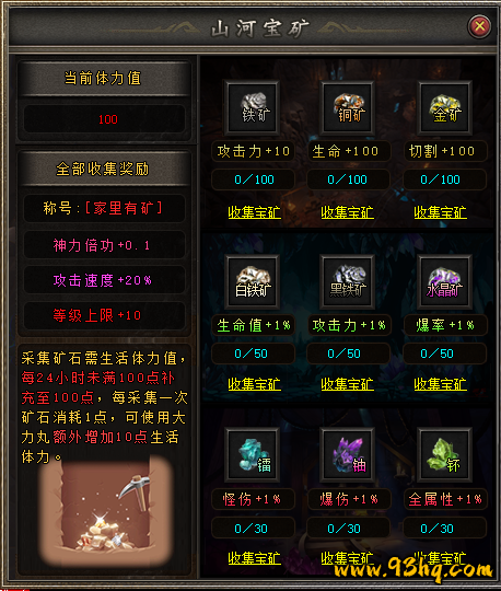 需收集“地宝金石”作为鉴定材料,打开背包主副页选择装备进行属性鉴定。