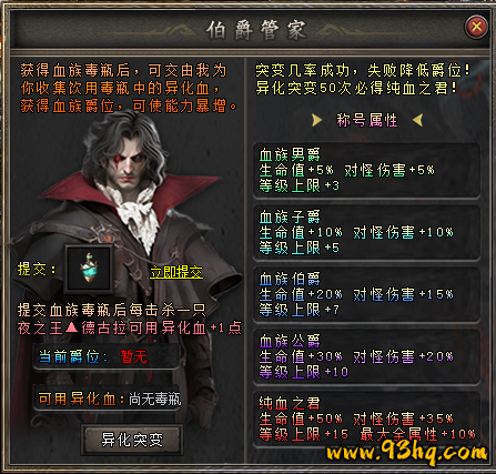 5. 【吸血王城】内寻找伯爵管家获得纯阳之血统治死亡之海