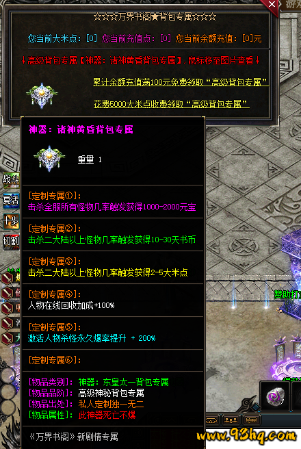 2、在领背包神器:几率获取大米、天书币,回收加成100%,爆率+200%