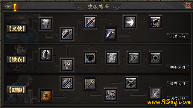 三种流派:义侠、铁衣、劫影