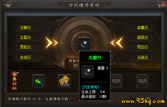 洗髓丹:增加生命上限,最多服用10颗