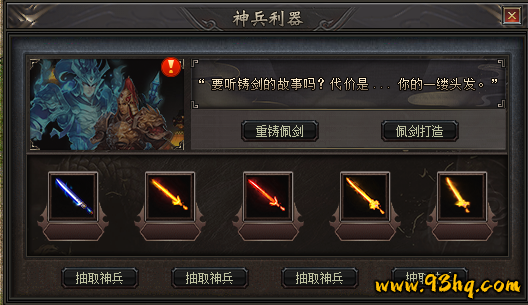 佩剑可打造,神装碎片可抽取神兵,还可重铸神兵