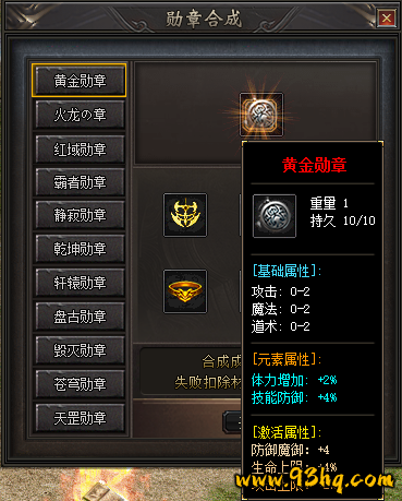 佩戴勋章:激活增加防御魔御、生命上限、攻击上限